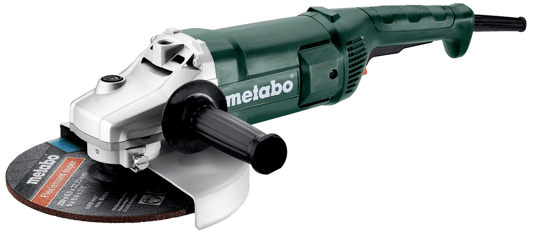 Metabo Marathon-motor med patenteret støvbeskyttelse for lang levetid, Robust motor, Startstrømbegrænser med softstart hindrer, at sikringen slår fra under start, Ekstrahåndtag kan monteres på tre positioner, Metabo sikkerhedsafbryder forhindrer utilsigte